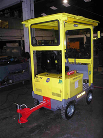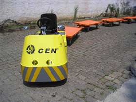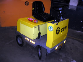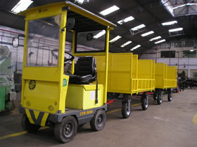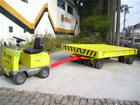 Rebocadores eletrônicos para arraste de 3000 Kg ou 5000 Kg. Freios hidráulicos aplicados nas 4 rodas, controle eletrônico de tração, motor elétrico de 24V 4Kw ou 48V 8Kw. Equipado com faróis, lanternas, indicadores de segurança, buzina, horímetro, indicador de descarga de bateria e outros de acordo com sua solicitação. Veículo com protetor de operador para ambientes externos.